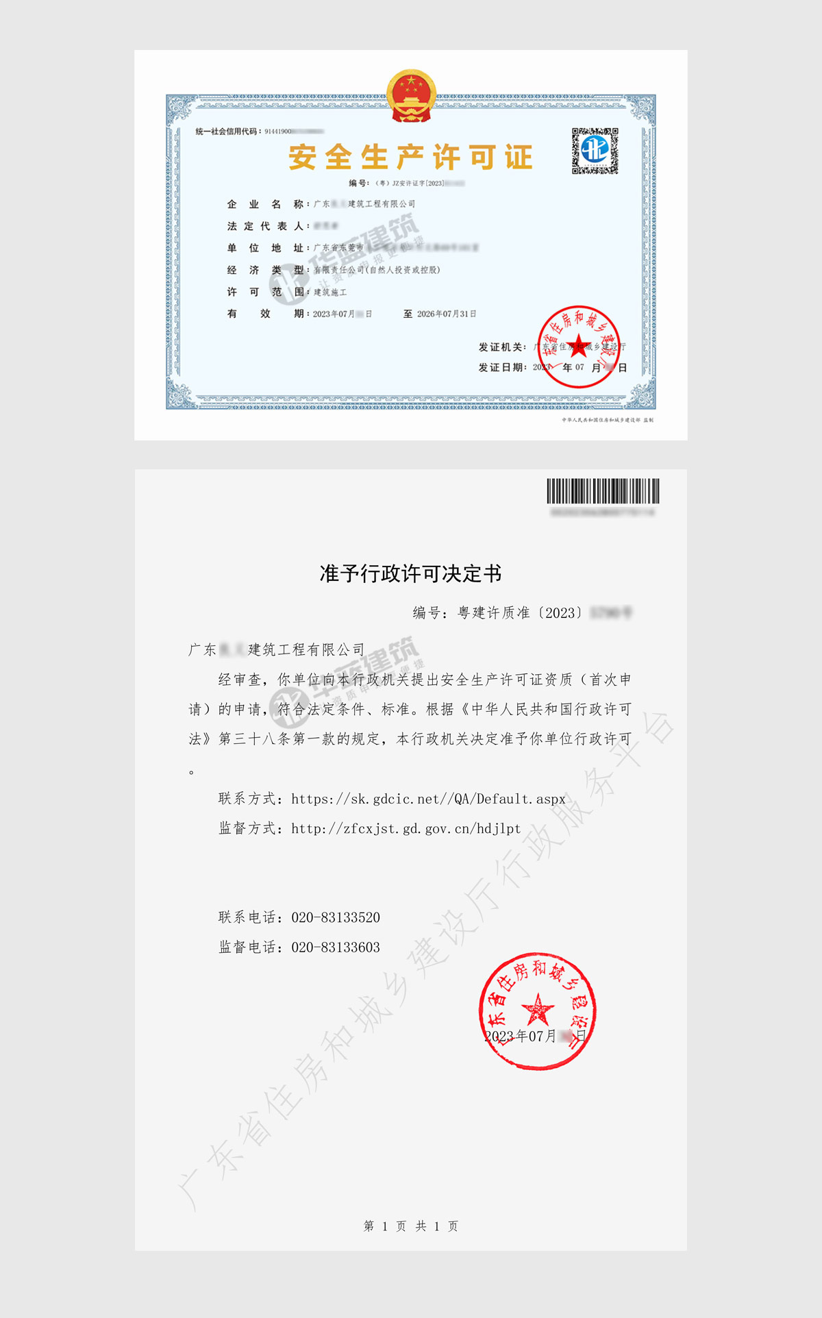 申报的施工劳务不分等级安全生产许可证资质证书成功获批!