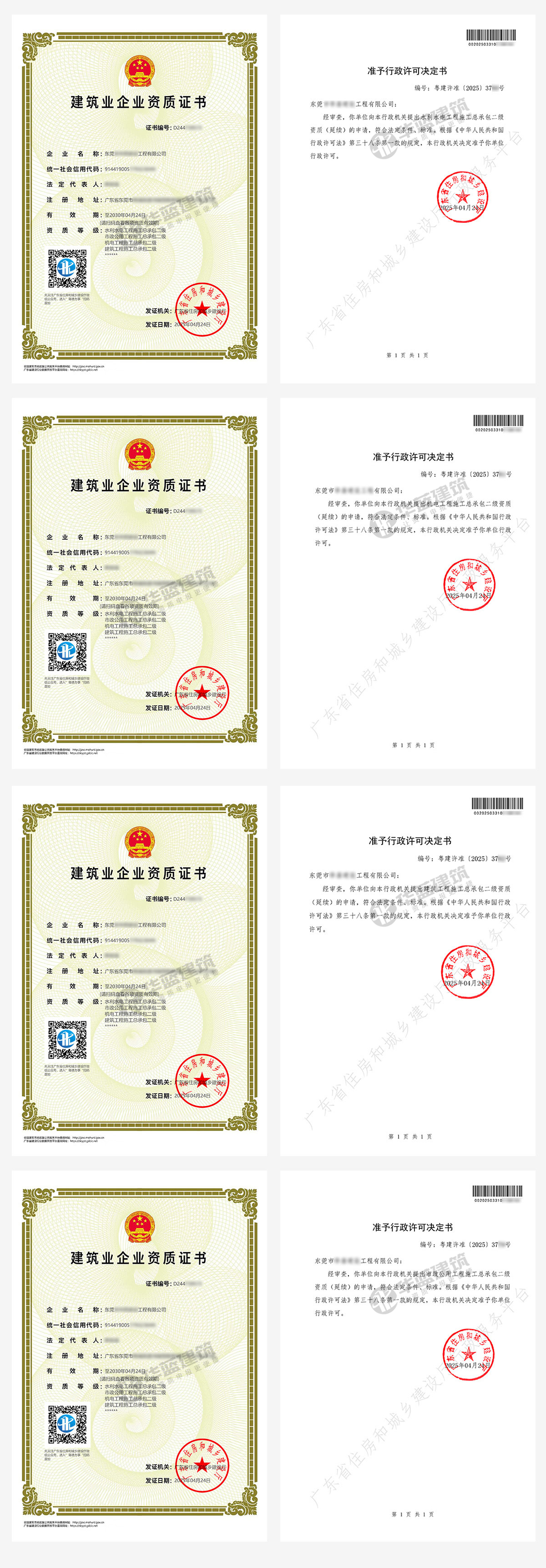东莞企业申报的水利水电工程施工总承包二级、市政公用工程施工总承包二级、机电工程施工总承包二级、建筑工程施工总承包二级(延续资质)资质证书申报通过,顺利获批!