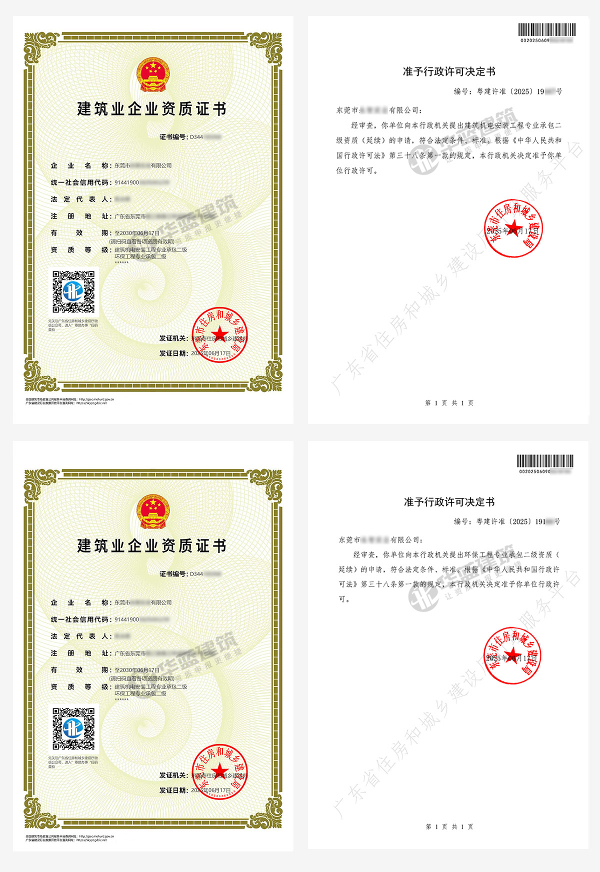 东莞企业申报的环保工程专业承包二级、建筑机电安装工程专业承包二级(延续申请)资质证书申报通过,顺利获批!