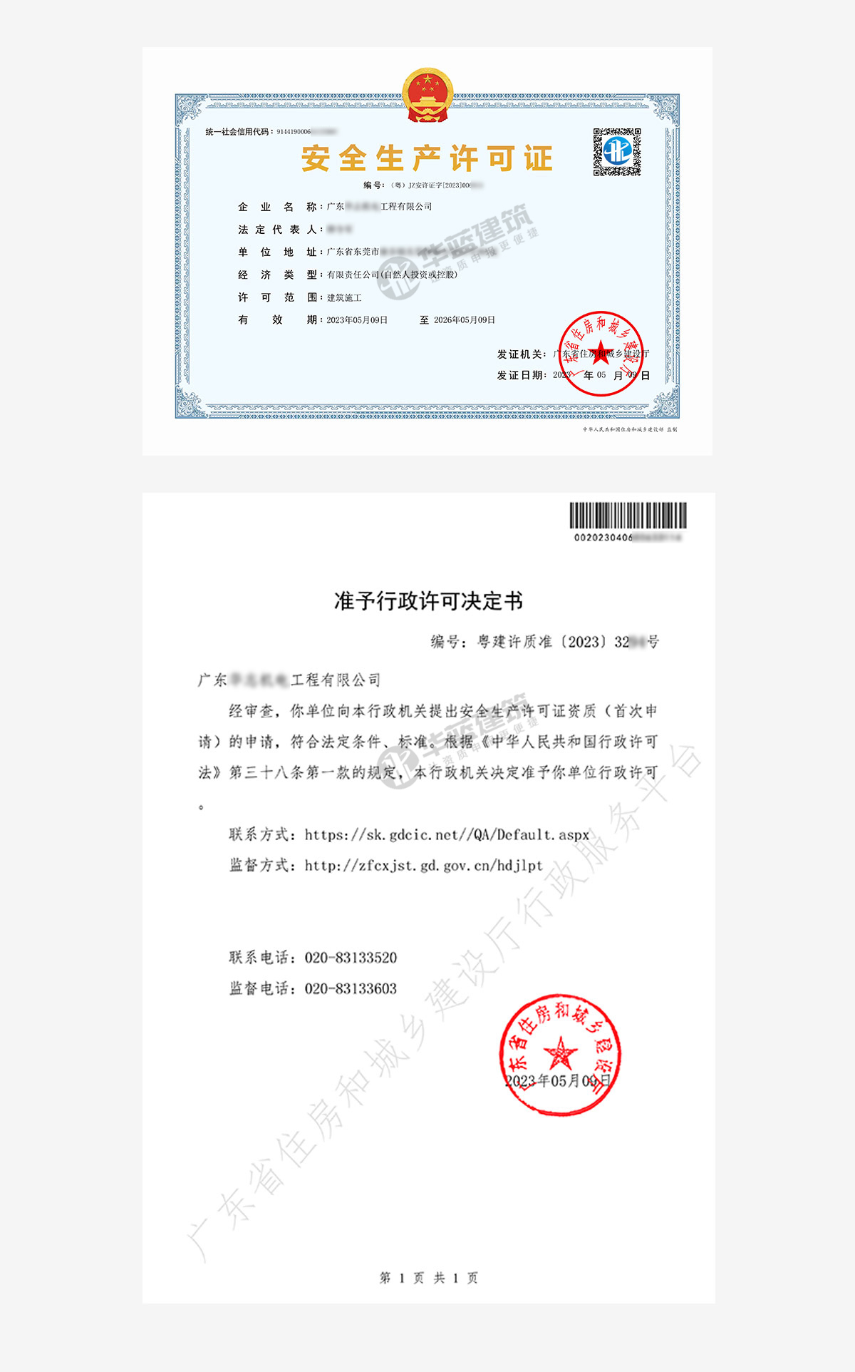 东莞企业申报的建筑装修装饰工程专业承包二级,安全生产许可证(首次申请)资质证书申报通过,顺利获批!