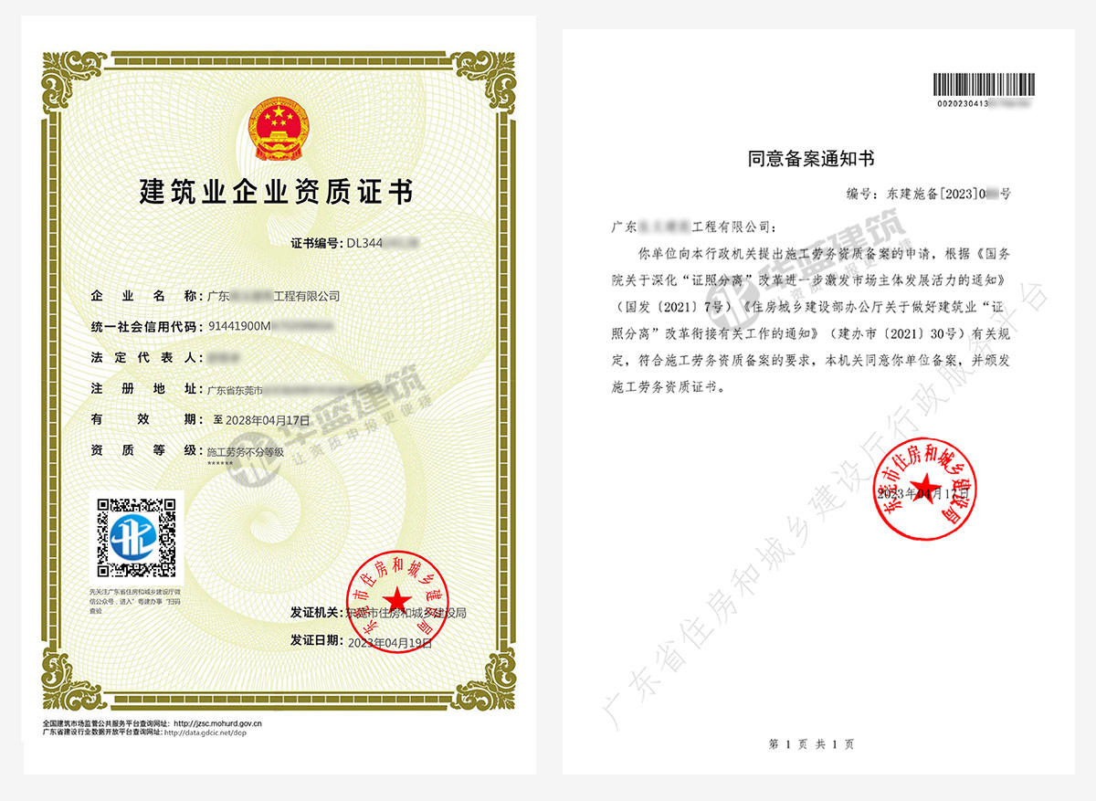 东莞企业申报的施工劳务不分等级(劳务备案)资质证书申报通过,顺利获批!