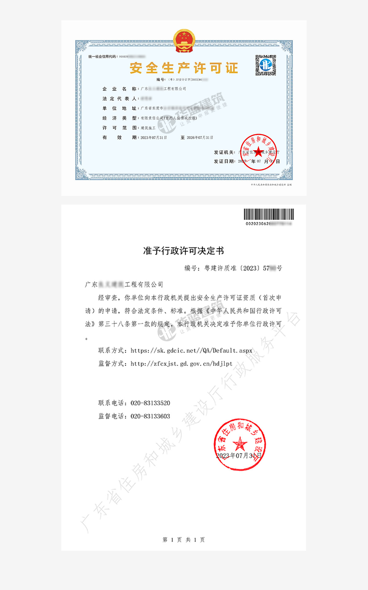 东莞企业申报的劳务不分等级安全生产许可证(首次申请)资质证书申报通过,顺利获批!