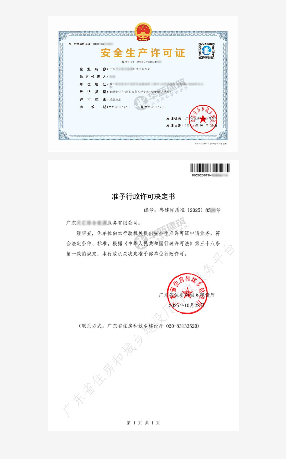 湛江企业申报的施工劳务不分等级安全生产许可证(首次申请)资质证书申报通过,顺利获批!