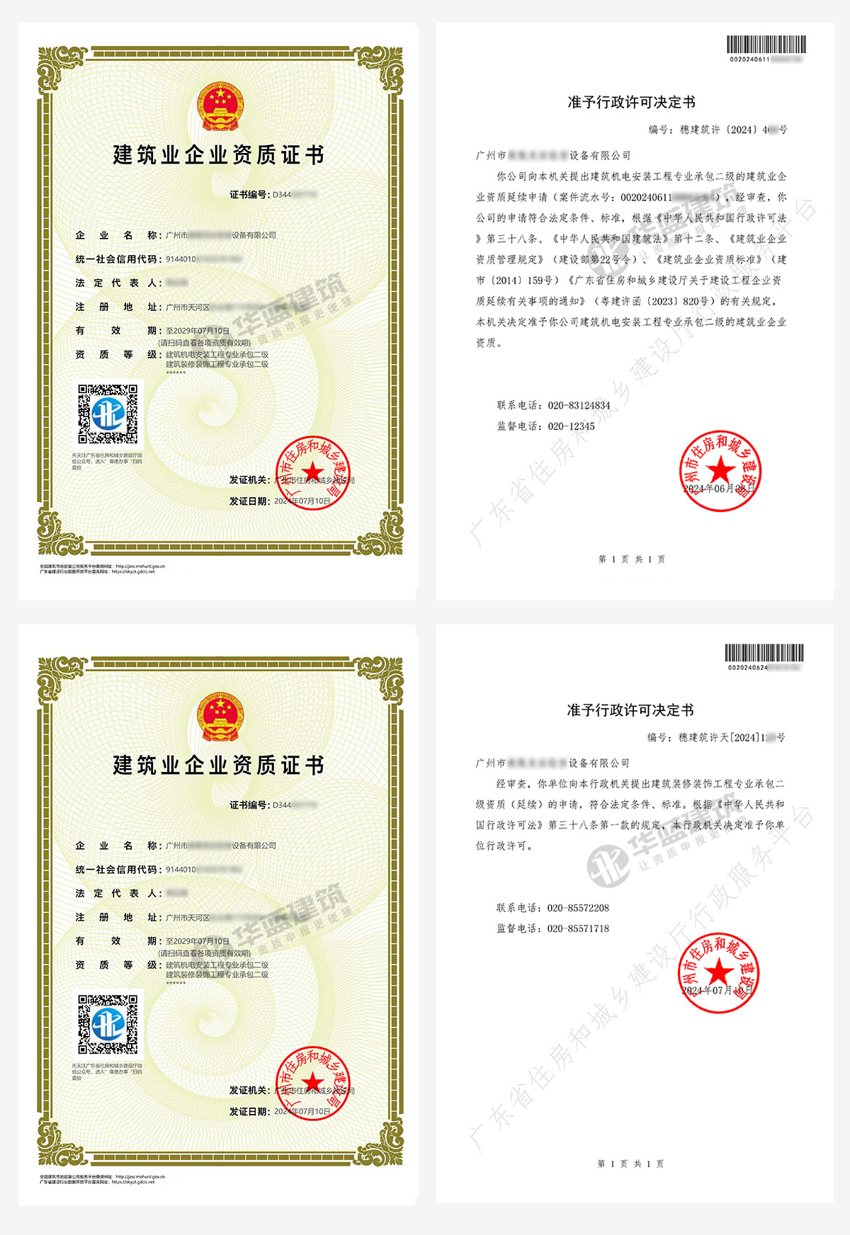 企业申报的建筑装修装饰工程专业承包二级、建筑机电安装工程专业承包二级(延续申请)资质证书申报通过,顺利获批!