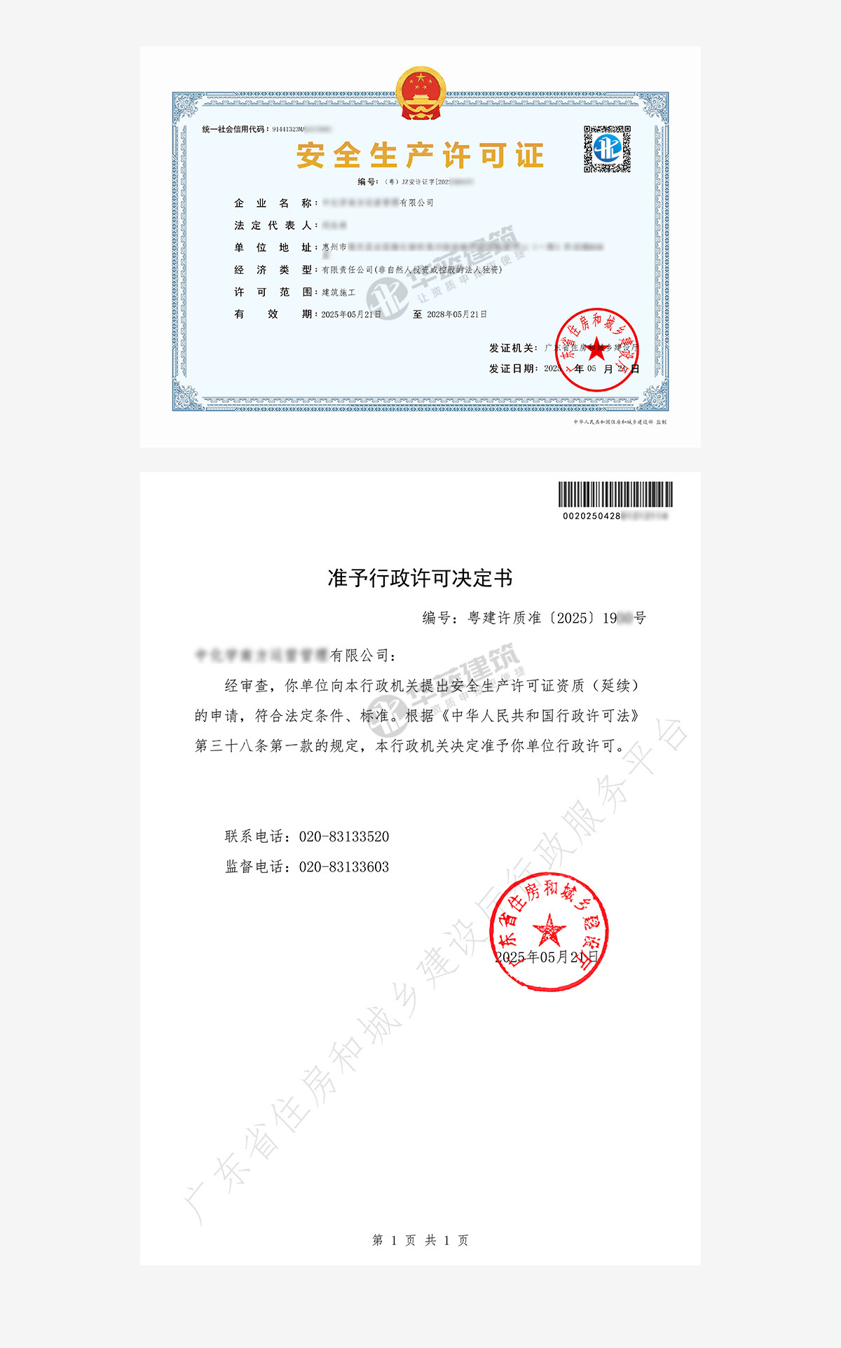 企业申报的市政公用工程施工总承包一级安全生产许可证(延续申请)资质证书申报通过,顺利获批!